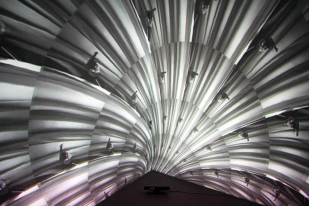 • Un ordinateur PC est relié à quatre vidéoprojecteurs et à une Kinect (caméra sensible aux mouvements).